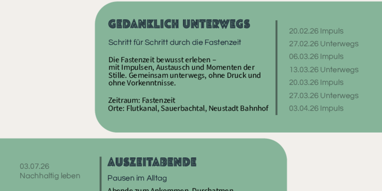 Unterwegs sein in der Fastenzeit, Auszeitabende nehmen, sich besinnen - Gemeinschaft genießen - Neues entdecken und lernen! Das alles könnt ihr für Euch wahrnehmen!